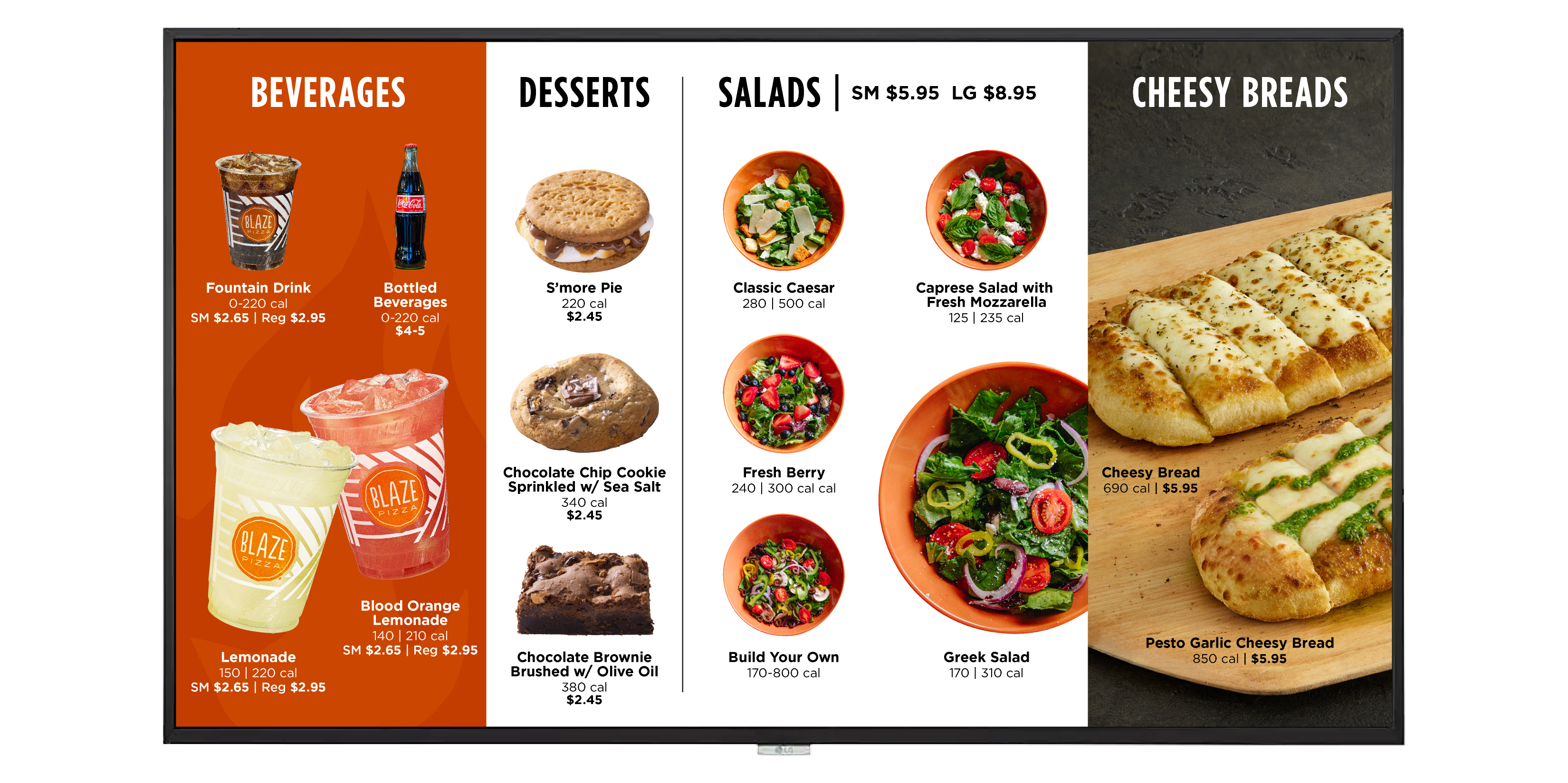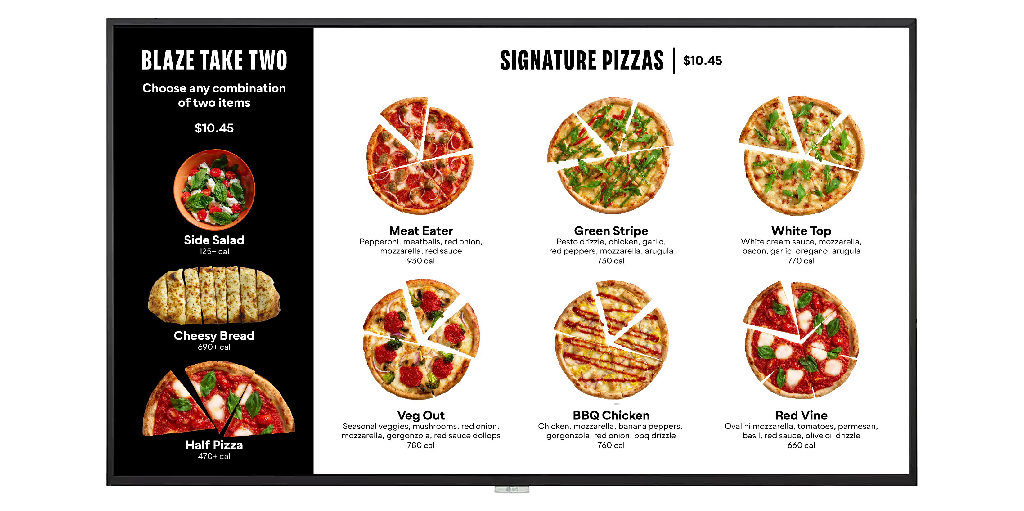 Blaze Pizza seeks visual design services for in-store digital menu screens. The goal is to re-imagine how the digital menu can express a fast-casual upscale dining experience, align with the overall brand identity and in-store aesthetic, and efficiently communicate menu offerings to maximize throughput.