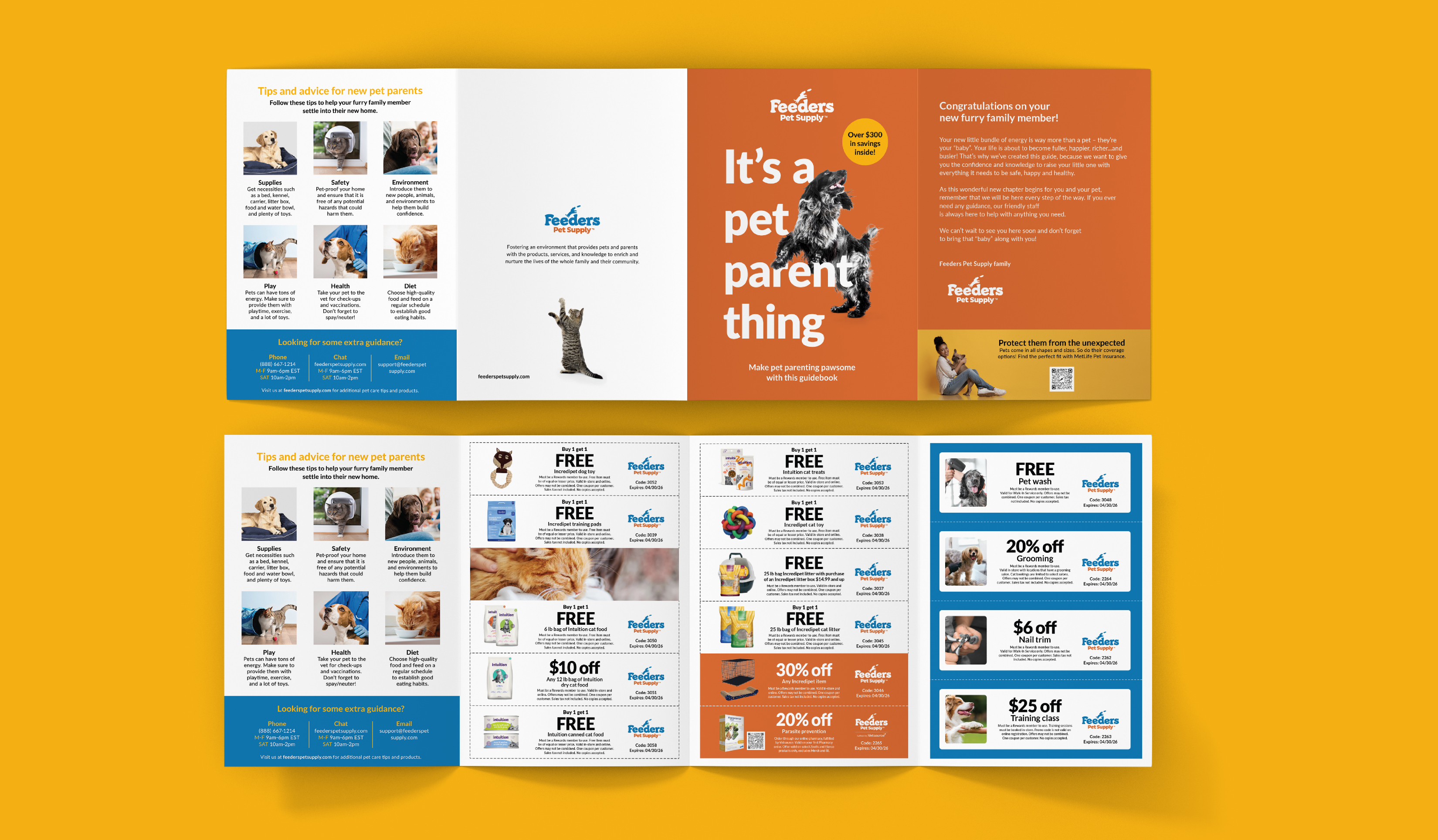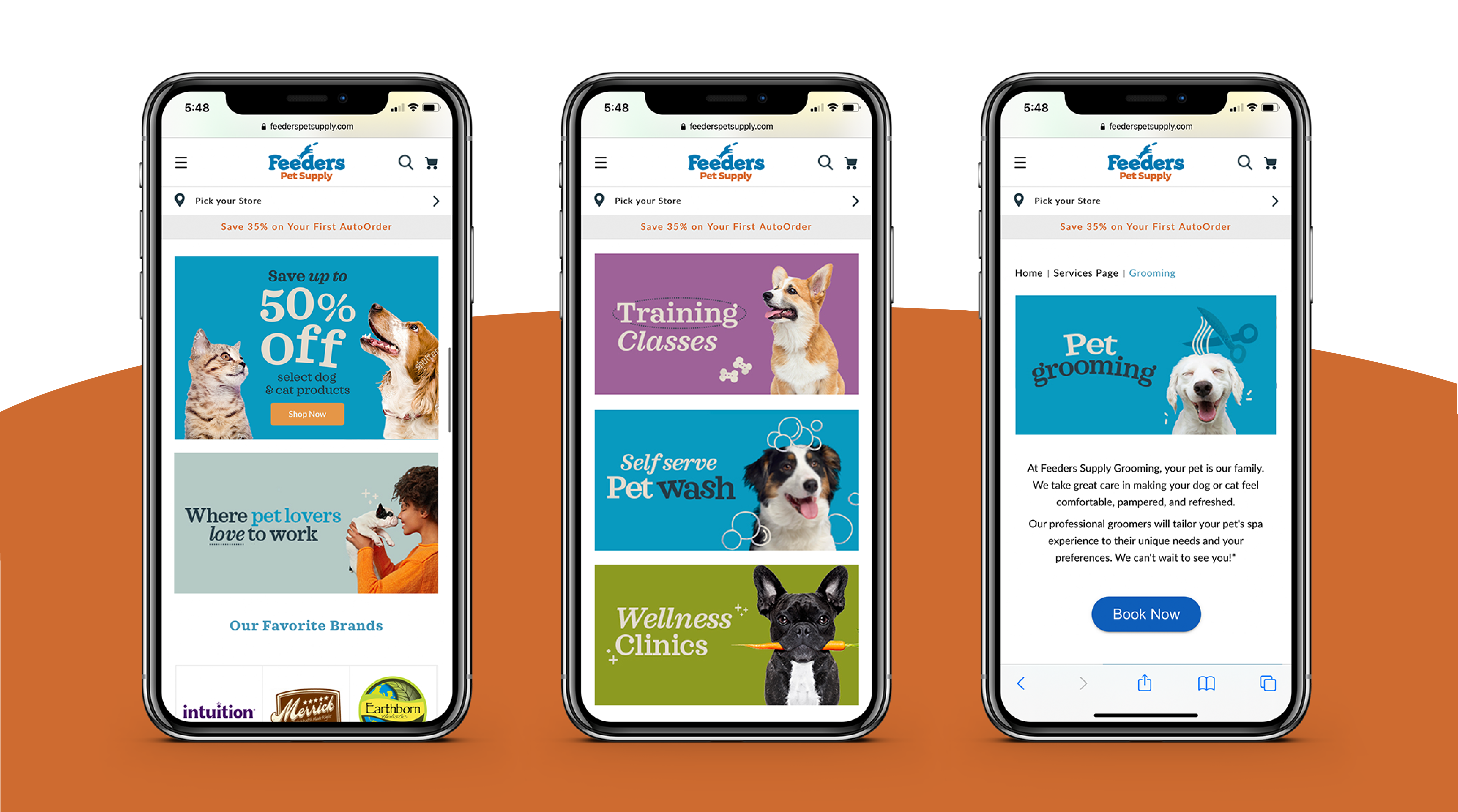 Visual identity is one thing, but we took it a step further and created unique messaging. This is where the brand really came to life and would set them apart from other pet retail stores. The playful voice reflects the feelings that they want their customers to associate with Feeders Pet Supply – fun, playful and energetic.