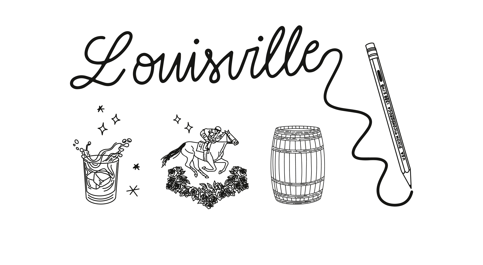 To achieve this, we included iconic Louisville elements and mixed those in with memoreable work-related items. While the drawings were kept as "fun" elements in the design, we wanted to include copy, which would bring a formal tone to the piece. While some copy, such as "Possibility City", is already known as an iconic staple to Louisville, we wrote a few of our own that would emphasize the idea of working from home.