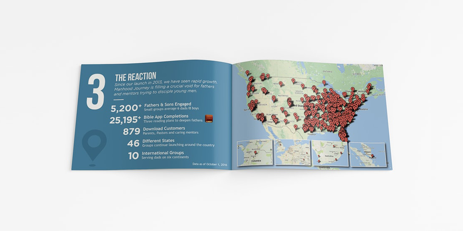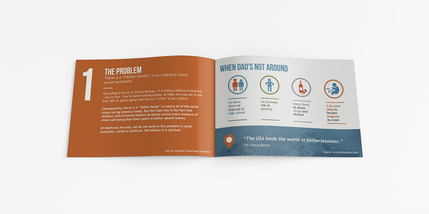 Over the course of a decade, the studio has had the opportunity to create a variety of materials for the Manhood Journey brand. Showcased below are a few of these projects.