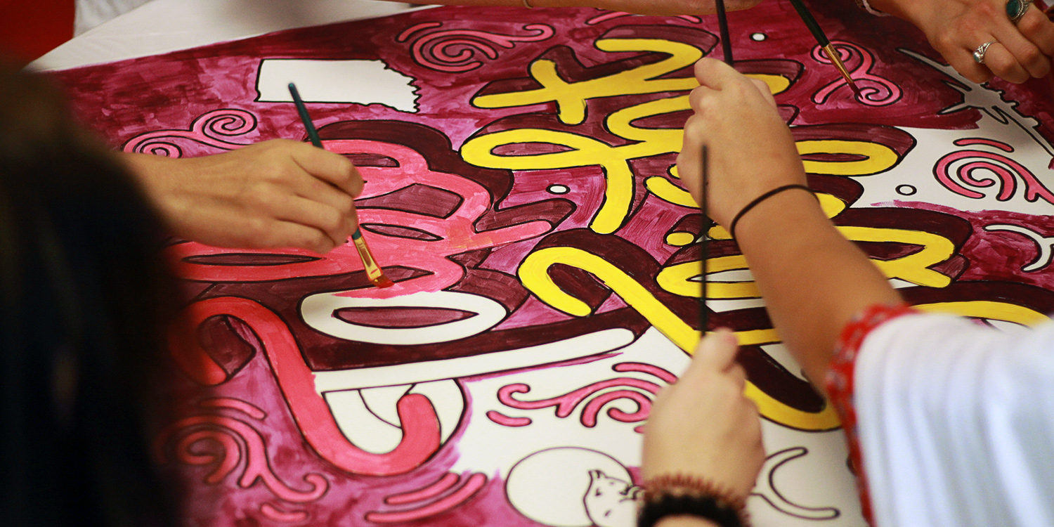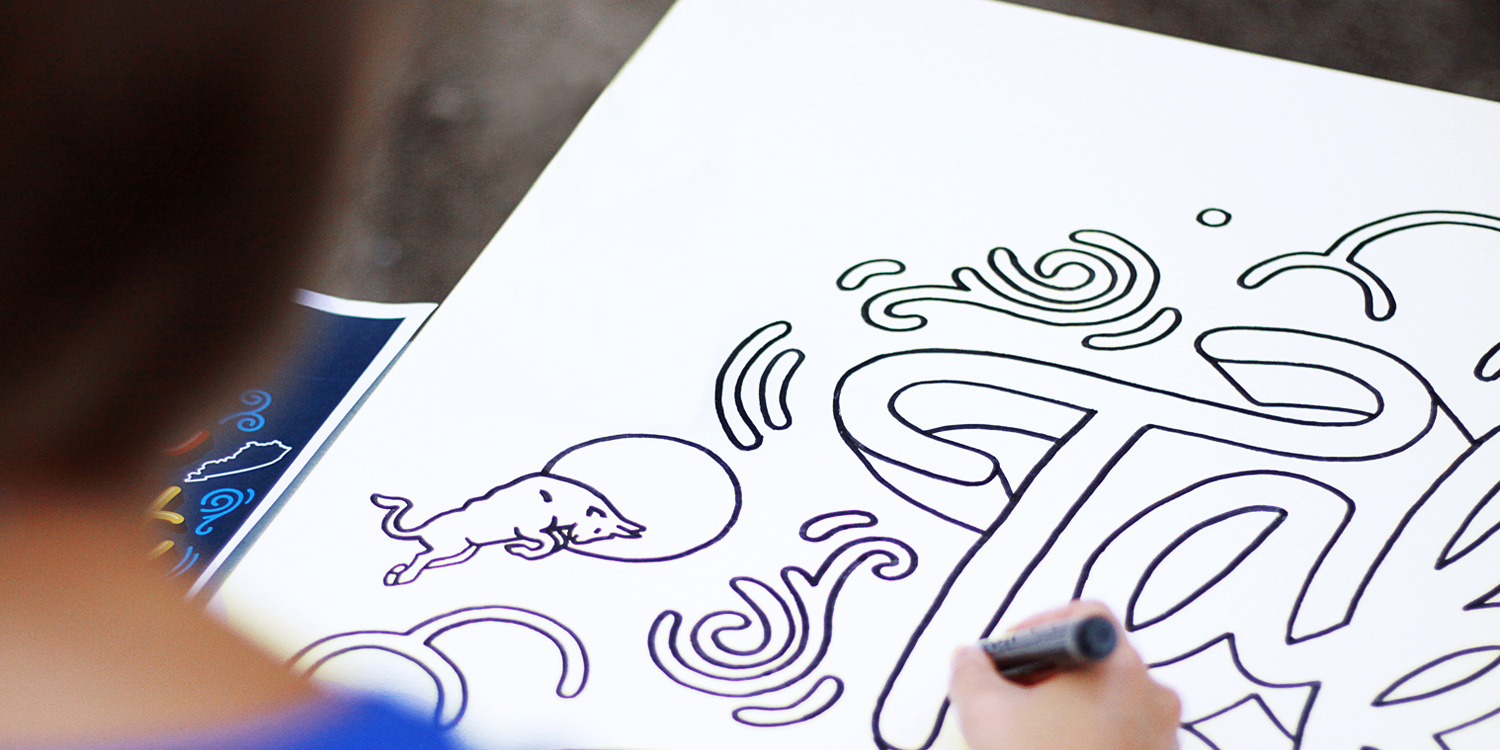 As a way to give back to their Kentucky and Indiana college interns, Red Bull Louisville came to us with the idea of a hands-on painting activity. They tasked us to create two custom canvases in which both groups from each state could participate in painting.