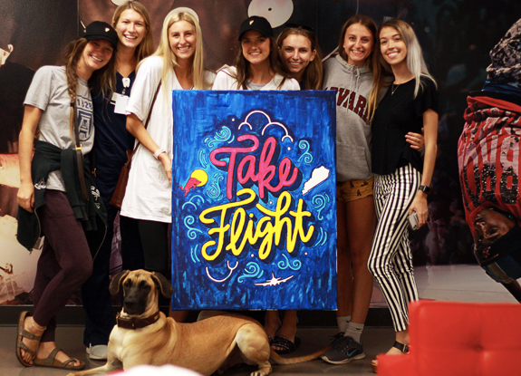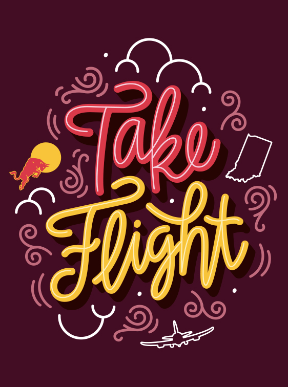 Our team immediately went to the drawing board and decided that it was important to create a motivational message that would be the focal point of the design. We wanted to play off the corporate tagline, "Red Bull Gives You Wings", so we landed (pun intended) on "Take Flight". Although the design base was the same for both canvases, we wanted to incorporate a couple additional elements, aside from our hand-drawn sflight inspired illustrations, that would represent each state. So, each design includes their state outline and features a custom color palette unique to its own.