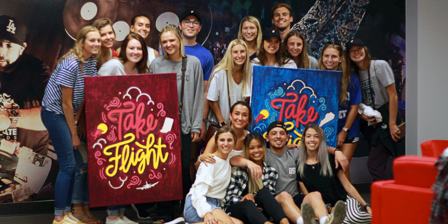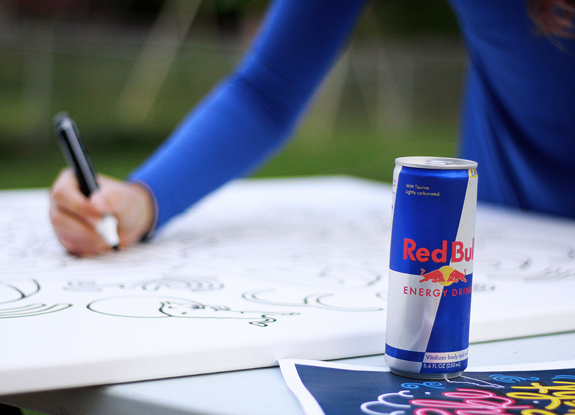 Students had a lot of fun learning new painting skills and had a great team building experience. That was not the end for the two canvases, both Red Bull Louisville and Red Bull Indianapolis offices decided to hang the final canvases in their respected warehouses. The paintings will continue to inspire future generations of Red Bull interns for years to come.