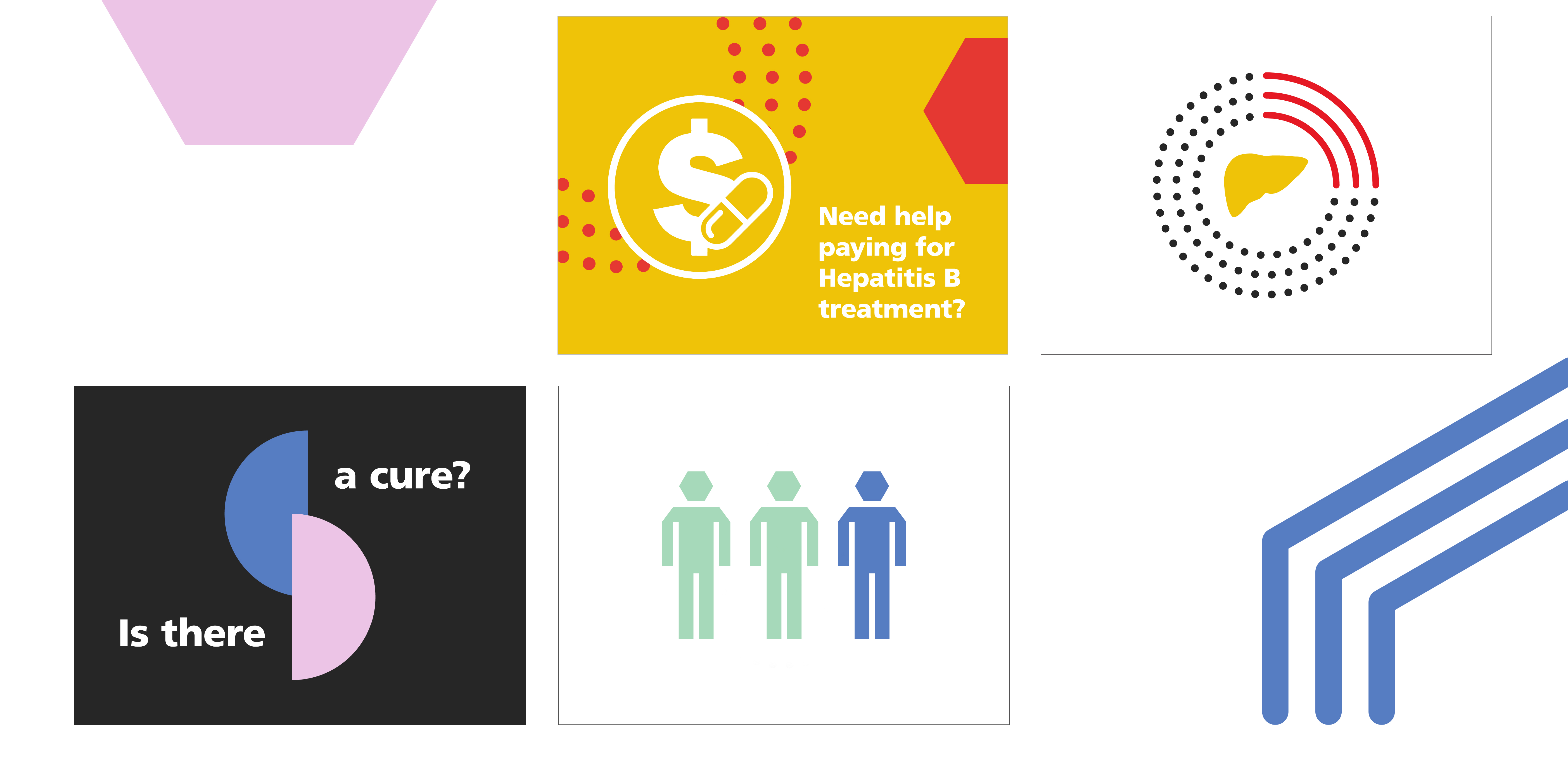 These social media graphics needed to stand out, so we sought out the best inspiration–the Hepatitis B virus. When we looked into this we were surprised to see that the virus is actually made up of a variety of different shapes. We took these shapes and played around with the elements to make some really fun and eye catching designs.