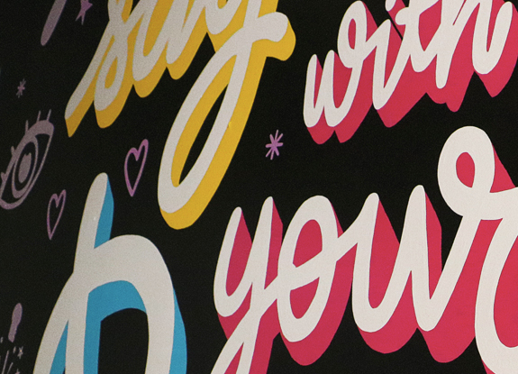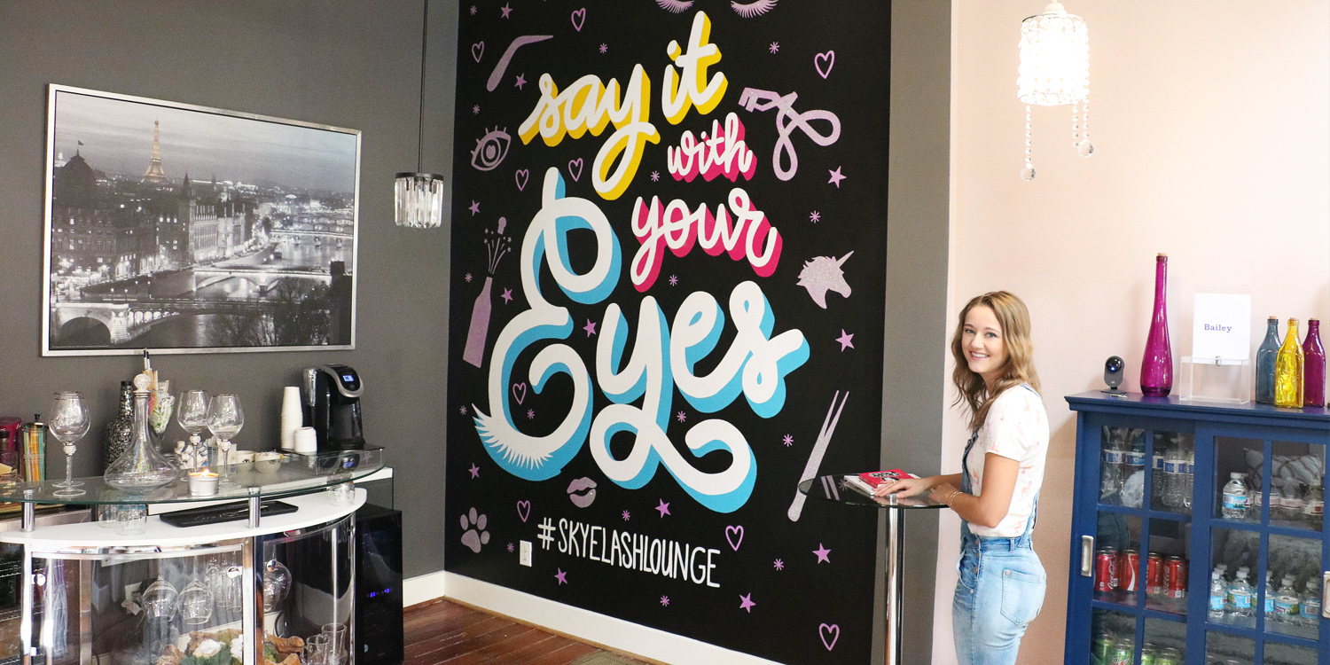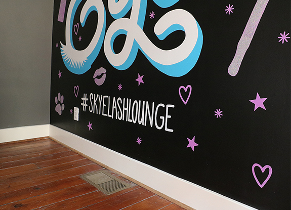 Through lots of collaboration, we arrived at the phrase, “Say it with your eyes”. These words not only take the appropriate nod towards lash service, but it also serves as a positive reminder that it isn’t your outer beauty that defines who you are as a woman. It’s been said that the eyes of a woman are “the window” to her soul—which is where one will find her true beauty. With a design in hand and brushes, paint, and glitter in another, the Lashtastic wall mural was brought to life.