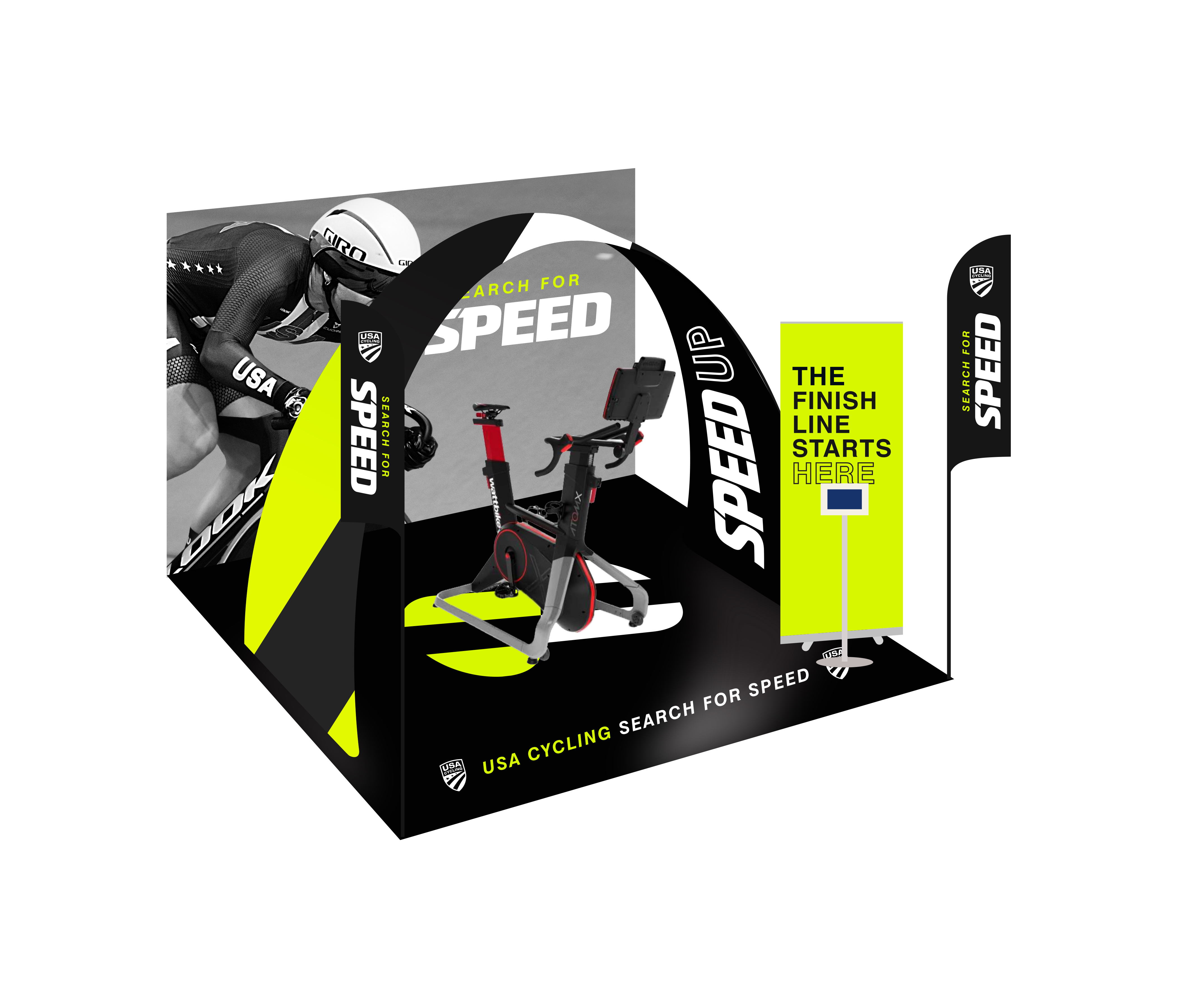 USA Cycling started developing a wireframe of materials that they needed for the indoor and outdoor displays and sought us out to create the branding and identity and inspiring visuals for these pieces. To attract new talent, we knew that the design had to have an elite and powerful look and feel.